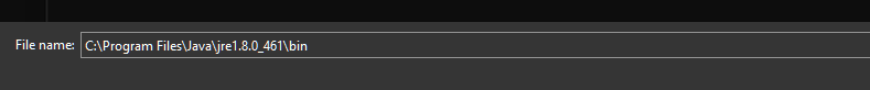- Type C:\Program Files\Java\jre1.8.0_461\bin as the File name and press enter